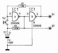 Eine bistabile Kippstufe könnte man auch mit dem 4049 (6 Inverter/Puffer) bauen. Wenn ich mich nicht irre laufen die CMOS-Bausteine der HCC/HCF-Serie bereits ab 3V.