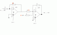 Ich bin mir ja nicht sicher aber, wenn ich beim ersten OPV 10V anlege, verstärkt dieser auf -20V. Somit wäre die Spannung höher als die Versorgungsspannung -15V. DAs funktioniert dann ja nicht oder ?