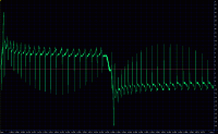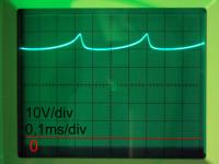 Das ganze habe ich mit einem DSO mit 250kS/s aufgezeichnet, auf einem normalen Oszi sieht es genauso aus, es ist also kein Messfehler ! Die Messamplitude beträgt +/-500V für +/-100% an der Skala rechts. |