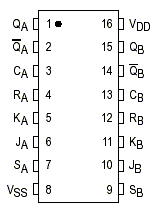 Außerdem muss der J- und K-Eingang auf 8V, der S- und R-Eingang auf 0V liegen, sonst funktioniert es nicht als Toggle-Flipflop. Der /Q-Ausgang bleibt einfach offen.