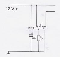 Den Widerstand kannst Du auch direkt parallel zu dem Kondensator legen, wenn Du kein Relais mit zwei Umschaltkontakten hast; der Kondensator muß dann aber größer sein.