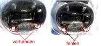 Der Rasierer rastet nicht mehr richtig in die Öffnung ein. Der Rasierer hängt quasi nach vorne. Als ich mir das ganze etwas genauer angesehen habe, konnte ich feststellen, dass 2 Gumminoppen, die den Rasierer in Richtung Haltebügel zurückdrückt irgendwie verschwunden sind.