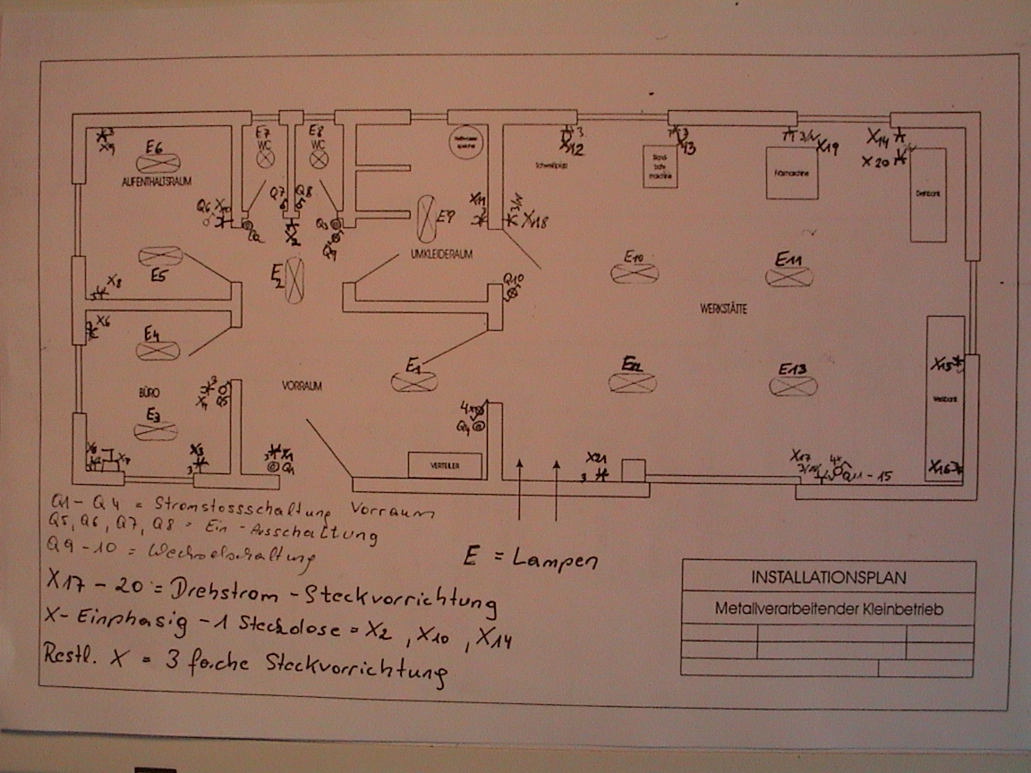 Für die allgemeine Werkstattbeleuchtung sollen vier Quecksilberdampfleuchten angebracht werden, die einzeln beim Eingang vom Vorraum aus zu schalten sein müssen.