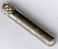 Es ist ein herausgebrochener Stift eines vergossenen Netzsteckers. Man sieht noch den Rest des angepunkteten Kupferkabels.