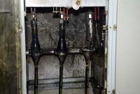 so nochmal das bild vom hausanschlusskasten . nächstes bild zeigt einen NSP-Verteiler der unter einer Turmstation steht . wahrscheinlich aufgrund einer schraube die sich im inneren des schalters gelöst hat wurden zwei monteure stark elektrisiert bevor die einspeisesicherung abgeschaltet hat . bild 3 :Fehler im endverschluss aufgrund fehlender kabelmasse . Bild 4 : Spannungswandlerfehler der zur totalzerstörung der schaltzelle geführt hat noch vor ansprechen der HH-Sicherung des wandlers . Bild 5 : Ausgebranntes kleinschaltfeld 20kV wegen erdschluss im netz dadurch erhöhte aussenleiterspannung in den 2 gesunden phasen . normalerweise für gut gewartetes netz kein problem . die Trafozelle war verschmutzt dadurch überschlag mit totalhavarie .