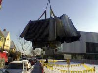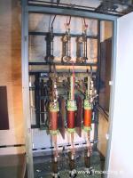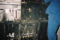 Und weiter gehts . Starke verschmutzung im bereich einer durchführung hat einen überschlag von 20kV bewirkt . Laut "Ohrenzeugen" soll in der Station mehr als 5 minuten ein prasselndes Geräusch zu hören gewesen sein . Im UW wo die Kabelschleife in der die Station liegt wegführt , wurden vor dem auslösen des leistungsschalters keinerlei Störungen wie etwa ein erdschluss oder ein absinken der spannung bemerkt . Die nächsten 2 bilder zeigen eine zerstörte 20kV schaltzelle aufgrund eines wasserschadens einen stock ober der station . Nicht wundern wegen der billigen bauform der schaltzellen . In Wien und Umgebung gibt es noch viel schlimmere stationen die noch nicht umgerüstet wurden wo z.B. nur ein schutzholz vor den Mittelspannungsanlagen montiert ist und geschaltet wird mittels schaltstange . Mittlwerweile unterlassen wir es aber in den wirklich miesen stationen zu schalten und verlagern die schaltstelle meist in neue stationen auch wenn dadurch mehr kunden betroffen sind . Nächstes bild zeigt eine schaltanlage der firma siemens und trotz der hohen qualitätsstandards dieser schaltanlagen kommen fehler vor . Das letzte Bild ist aus Wr. Neustadt und zeigt den Trafo eines Privatunternehmens . das EVU wurde zur Unterstützung der Betriebselektriker angefordert weil die nicht mehr wussten was sie mit dem trafo machen sollten . Wer schon mal versucht hat einen so zerstörten Trafo ca. 100m durch Kellergänge zu transportieren weiss was Arbeit ist . Klar es hätte auch einen lastenaufzug gegeben bloss war durch den brand des trafos die Mittelspannungsschaltanlage so in mitleidenschaft gezogen worden das ein wiedereinschalten der stromversorgung fahrlässig gewesen wäre . Deshalb KEIN STROM = KEIN AUFZUG . Trafo 100m durch Keller in Werkstatt und dort über oberlichte ins Freie .