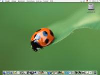 Deshalb hier zur Abwechslung meinen Mac OS X Desktop. Keine Icons stören das Bild (bis auf die Laufwerk-Volumes), diese werden ordentlich im Dock abgelegt (unten), der verschwindet, sobald man die Maus wieder hochbewegt.