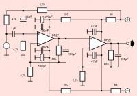 Davor eine Mikrofonvorstufe, die die wesentliche Verstärkung erledigt, und hinter das Filter eine Anpassung an den A/D-Wandler-Eingang.