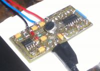 Vielen Dank für Deine Hilfe, Ich arbeite zurzeit an der Leiterplatte und werde zusätzlich zwei Kondensatoren (jeweils 1µF) im Verstärker einsetzen um die DC-Anteile endgültig zu unterdrücken. Also zwischen 4,7k und Masse sowie 2,2k und Masse.