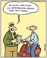Der Flugkapitän macht seine Durchsage und vergißt, das Mikro auszuschalten. "Jetzt trinke ich erstmal einen Kaffee und dann kann mir der neue Steward einen blasen." Die Fluggäste hören natürlich alles mit. Der neue Steward rennt erfreut in Richtung Cockpit, da sagt eine ältere Dame: "Sie brauchen sich nicht so zu beeilen, er wollte doch erst einen Kaffee trinken..."