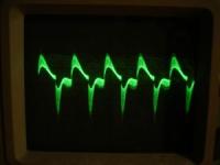 Nun zum Motor. Ich habe den Versuch wiederholt und diesmal das Schirmbild fotographiert (AC Kopplung um den Gleichspannungsanteil abzutrennen). Die Ausgangsspannung war auf 12Volt eingestellt. Die Brummspannung hat eine Frequenz von 27kHz und beträgt ca 2Volt.