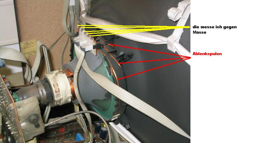 : An den Ablenkspulen brauchst du dann bei diesem fehlenichts messen.