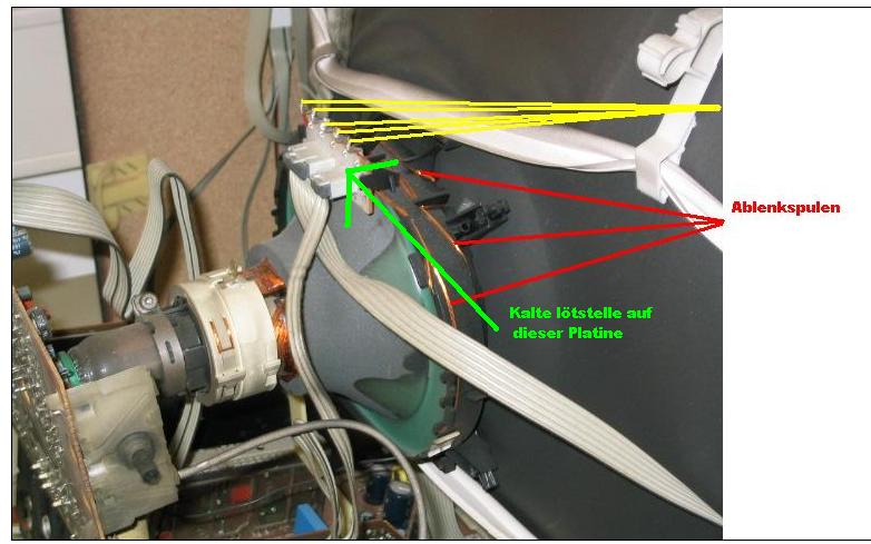 Kalte Lötstelle an der Platine der Ablenkspulen!