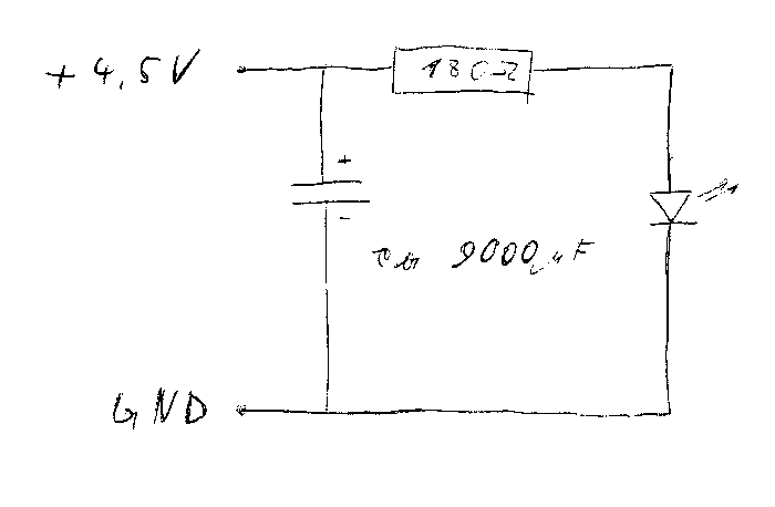 kann mir jemand eine schaltung malen/zeichnen wo man wenn man die batterie entfernt die led 20ma 2v noch ungefähr 5 sec. leuchtet ich weis das sie dabei oder danach abdimmt. Bitte ein schaltbild oder mit multisim eine schaltung und vill. erklären wie ihr auf den wert des kondensators gekommen seid und welchen ich dazu brauch.