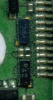 Unten dann die Hauptplatine mit der externen Schnittstelle. Die beiden länglichen Teile am Stecker sind (Interface?) Flip-Chip-ICs, also völlig gehäuselos.