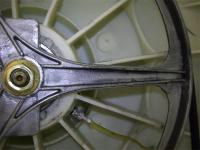 Auch wenn die Riemenscheibe so aus sieht, werden die Geräusche vom Motor kommen. Keliriemen ab, und auf Schleudern einschalten. Wie hört sich der Motor an? Ich würde nach den Kohlen schauen. Abgelaufene Kohlen verursachen auch Geräusche (Bürstenfeuer)