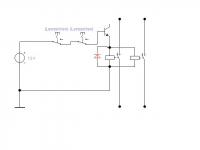 -> also 12V -> Relais -> collector(trans)emitter->masse