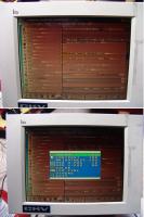 Ich habe den Monitor bei ebay ersteigert, angeblich sollte nur die Hintergrundbeleuchtung sehr dunkel sein. Das Bild sieht allerdings so aus, wie auf dem Bild zu sehen. Es ist ziemlich dunkel, hat eine bräunliche Farbe und immer an Stellen mit etwas schwarzem auf weißem Hintergrund sind helle, horizontale Streifen zu sehen. Das OSD-Menü wird allerdings völlig korrekt angezeigt. Ich kann also wohl ausschließen, dass es am Panel, dem Inverter oder der Beleuchtung liegt. Hat jemand eine Idee was das sein könnte und wie man es beheben kann?