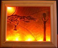 Obwohl die beiden Bilder fast gleich groß sind mußte ich für das Massai-Bild 6LEDs nehmen. Die gravierte Fläche schluckt unglaublich viel Licht