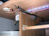 Zuvor hatte ich eine mit 25 Stück alten Glühlampen aus einer Telefonanlage. 30V/40mA. Allerdings nicht dimmbar. Das Licht war wirklich schöner, nur wurden die Fingerchen immer verbrannt, wenn man ran kam... Die LED's nehmen auch nur noch ein Zehntel der Leistung auf, wie die Lämpchen.
