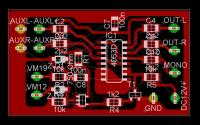 Nach dem Austausch stelle sich aber das Problem, dass der SMD-Widerstand nur sehr wenig Platz "unter sich hat", um da die AUX-IN-Leitungen an Pin 2 und 4 des 4053 darunter durchzulegen. Also habe ich die Vcc-Bahn anders verlegt und habe nun mehr Platz für die AUX-IN-Leitungen.