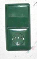 Jung, Programm CD??? (auf dem Rahmen steht 05810306) in grün, ebenfalls Zentralscheibe für 4-fach Antennendose sowie ein Steckdoseneinsatz.