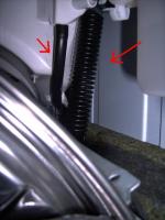 Also eins kann man schonmal sagen: Der rechte Pfeil zeigt auf KEINEN Schlauch, sondern auf die Aufhängung! Wo geht denn der Schlauch hin und wo kommt er her? Schlauch mal abmachen und untersuchen.