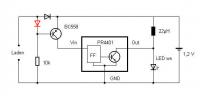 anbei die orginal Schaltung, wie Du siehst ist die Diode da schwarz. Beim anschliesen der Solarzelle am Tag! brannte die LED weiter erst die gedrehte Diode brachte abhilfe.