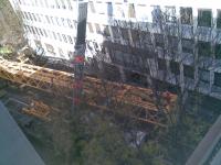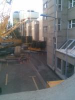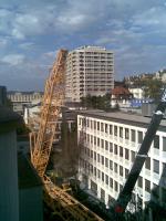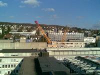 Nein in Tatsache, ist es wirklich eng. Also Kran braucht den ganzen Platz. Mussten extra wegen den Oberleitungen vom Tram, den Gittermast verkürzt montieren.