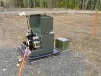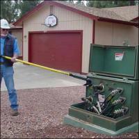 Noch 2 Fotos von solchen Kleintrafos . So wie ich das mitbekommen habe , schalten die solche Trafos mithilfe dieser Hot-sticks ab indem sie den primären Kabelstecker abziehen und mit einer spannungsfesten Verschlusskappe versehen (ebenfalls mit Hilfe eines Hot-Sticks). Und auf dem einen Bild sieht man auch so eine Haube hinter dem Trafo die der ähnlich sieht die der Bär "erlegt" hat .