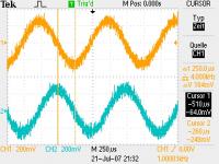 Im Anhang ein 1kHz Sinus. Der 2. Kanal ist um 250µs verzögert.