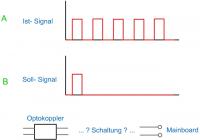 zweite Kippstufe im IC reagiert auf die negative Flanke von der ersten Kippstufe und gib nen einzelnen Impuls aus. -> weitergeleitet an den Optokoppler -> PC startet.