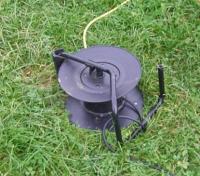 Vom Verteiler reichte die Kabeltrommel nicht und mußte mit einem Verlängerungskabel und noch einem Verlängerungskabel bis zum Wohnwagen gestückelt werden. Nun liegt die "Installation" im Freien auf der Wiese und wartet auf den nächsten Regen. An einem dieser Verteiler hängen natürlich auch noch einige andere Campingfreunde. Jeder Verteiler ist nur mit einem FI ausgestattet;