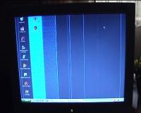 Sporadisch nach dem Einschalten oder während des Betriebes treten plötzlich senkrechte blaue Streifen und ganze senkrechte Felder auf (immer die Farbe blau).
