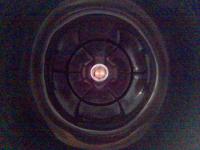 Blick von unten in einen Zylinder von einem Dieselmotor? Das goldene wäre dann die Glühkerze, die schwarze Farbe vom Dieselruß.