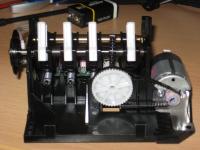 Der betroffene Motor ist nicht von der Service Station wo die Druckköpfe gespült werden sondern der von der Pumpstation der Tintentanks. Dieser dreht aber während des Einschaltens bis zum Fehler aber auch nicht.