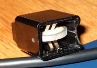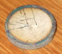 Im Innern befindet sich lediglich ein rundes Plättchen, welches an den Seitenflächen von den beiden Pins kontaktiert wird.