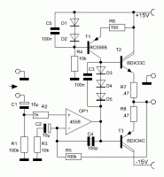 Der Vorverstärker alleine funktioniert ausgezeichnet, aber sobald man die Gegentaktendstufe dranhängt wird das Signal auf 5V Spitze/Spitze begrenzt, mit den Potis in den Stromquellen (IC2, und IC3) lässt sich das nicht ändern, nur die Grenzen können verschoben werden (z.B. von -2,5V bis +2,5v auf -2V bis +3V) aber die "5V-Breite" bleibt erhalten.