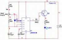 Ojeoje, die Schaltung sieht ziemlich wirr aus. Auf Anhieb seh ich da nen Fehler bei der Verdrahtung der beiden Kondensatoren am NE555. Die LED am TIP140 brauch unbedingt einen Vorwiderstand von etwa 300Ohm. Und die Potis sind auch falsch verbunden.