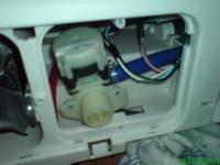 Ich hatte vor 1/2 Jahr schonmal das Problem, daß er kein Wasser mehr nahm. D.h. wenn das Programm beginnt hat er wohl abgepumt aber wenn er wieder Wasser nehmen sollte war außer brummen nichts mehr geschehen. Ich habe ihn damals aus der EBK ausgebaut. Wasserzulaufschlauch abgeschraubt, kleine Blende hinterm Schauchanschluß abgeschraubt, auf Plastikkasten (Aquastop??? - siehe Foto) geklopft und nach Wiedereinbau lief er wieder. Leider war dieses Vorgehen diesmal erfolglos.