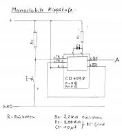 Da ich nur kurze impulse pro schaltstellung brauche habe ich mit einer Monostabilen Kippstufe eine Schaltung aufgebaut die beim Betätigen einer Wahlstellung ein Impuls (ca. 1sec.) ausgeben soll.