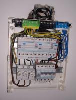 Nur der Vollständigkeit halber auch Fotos des anderen Unterverteilers (mit selektivem FI, an den Zähler angeschlossen, links oben der selektive FI). Auch nicht sehr schön, aber hoffentlich technisch OK.