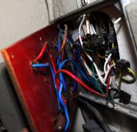 Interessant ist dann, was mit diesen Leitungen passiert: Diese Leitungen, immerhin die "Steigzone", wenn ich das so sagen darf, geht dann auch die Verteilung im OG. Daran hängen 6 Zimmer mit rund 15 Steckdosen... Diese sind dann untereinander mit 2,5mm2 Leitungen verbunden. Die Steigleitung hat jedoch nur 1mm2 (Reichen tuts schon knapp, nur Vorschrift ist es nicht gerade...)