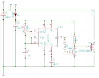 Das ganze Ding braucht, wie oben angedeutet nur dann Strom wenn die Glühkerze angeschlossen ist, und das geht so: Der 1µF Elko lädt sich während der Sperrphase über die Glühkerze auf nahezu Akkuspannung auf. Während der Leitphase sorgt die Diode dafür, dass der Elko nicht wieder entladen wird. Bei 10kHz reicht 1µF völlig aus um den NE555 und die Invertierstufe zu versorgen. (Zugegeben: der 100µF hat natürlich auch einen kleinen Leitwert, der die Zellen schön langsam entlädt, aber dass fällt bei der Selbstentladung der NiCd-Akku's wohl nicht ins Gewicht.)