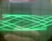 Es kann sein, daß auf dem Strahl noch eine Modulationskurve zu sehen ist (bei höherer Verstärkung), die aber nicht darstellbar ist, weil der Trigger nicht weiß, wo er triggern soll.