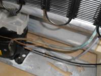 Ich habe den Gefrierschrank mal von der Wand abgezogen und habe auf dem Boden einen grünen Fleck (Grünspahn) gefunden. Dieser scheint wohl von einem Kupferrohr vom Kompressor in den unteren Teil des Gefrierschrank zu verschwinden. Ich meine das Rohr war sehr warm.