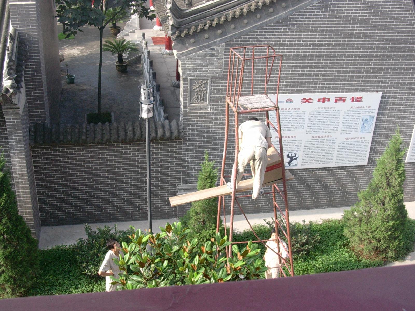 Man ist China vorbildlich. Es werden dort gerade Energiesparleuchten eingesetzt. Ich habe eigendlich nur darauf gewartet das er mit dem kpl. Gerüst umkippt. Er wird sich auf den ausleger setzen und seine Kollegen schieben ihn zur Leuchte.