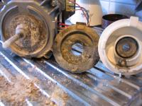 Mal Motor ausbauen, Pumpengehäuse demontieren und ggf. Fotos einstellen. Meistens ist der Flügelsatz hinüber. Beim Ausbau auf die Rheihenfolge achten.