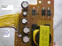 Die Spannungsmessung am Transistor kannst du dir knicken, da kommen Lottozahlen bei raus, immerhin ändert die sich mehrere zehntausend mal pro Sekunde! Wenn überhaupt mißt man da mit einem Oszilloskop. Trenntrafo nicht vergessen sonst knallt es!