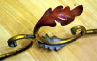 Hallo und danke für die schnellen Antworten, anbei also ein paar Fotos, die hoffentlich die Situation beschreiben. Bezüglich des Metalls kann ich nur sagen, dass es nicht besonders schwer ist (also keine Bronze, m. E. auch kein Messing), die Lackierung (Rot und Gold) hat zumindest die WD40 Behandlung überstanden. Danke für evt. Tipps oder auch weitere Fragen.
